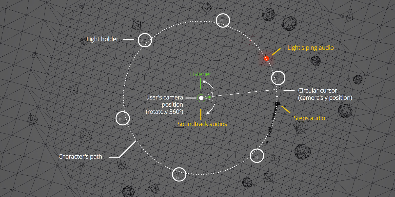 Another challenge was to get the same navigation to work well on very different devices. You had to be able to use a computer mouse, a smartphone’s gyroscope, a smartphone with Cardboard or and Oculus Rift… and it was also important to have a computer as a fallback for quick testing.