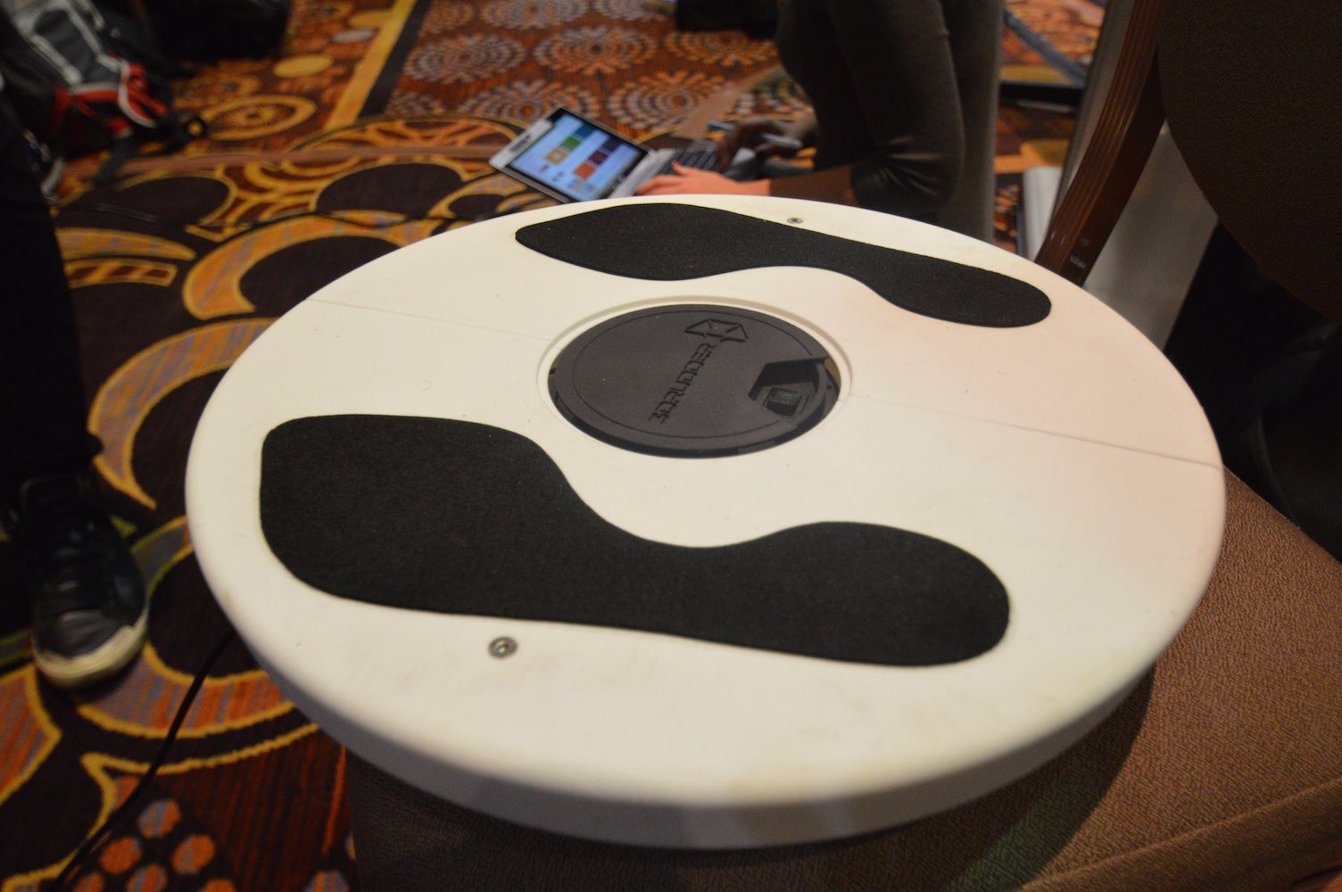 I might well have missed 3D Rudder had their founder and CEO Stanislas Chesnais not overheard me talking and tapped me on the shoulder. The Marseilles based startup were tucked away but had managed to secure space enough to demonstrate their new motion controller – designed to be used with your feet.