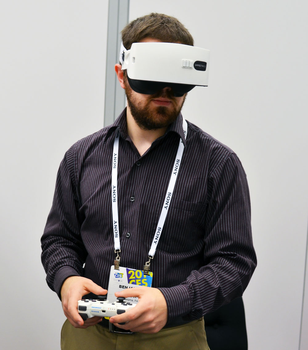 Every trade show I’ve been to in the last 6 months has had one consistent factor—Mason hustling the venue with seemingly unstoppable energy. With two of the company’s unmistakable white GameFace prototypes, he prowls the shows, spreading the good word of mobile VR. And he has good reason; GameFace Labs may very well be the furthest along in the quest to create a truly useable mobile VR headset.