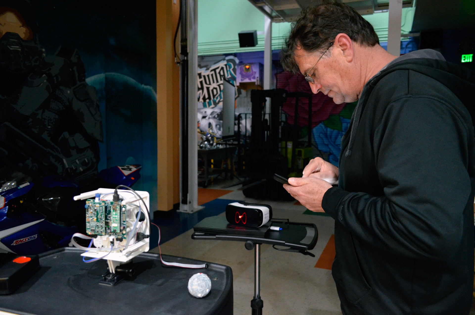 It’s an unusually rainy day in the hills of Livermore, CA, as I stroll down a row of small connected office buildings. Door after door with company logos prominently featured in the windows, but it isn’t until I find the door identified with only a small oval sticker that I stop. Collectors hoarding VR memorabilia 50 years from now might recognize the sticker—adorned with the letters ‘VR’ in the center and tiny ‘Oculus’ text at bottom—as one given out by the company in its earliest days. Fittingly, behind the door is the personal workshop of one of company’s earliest employees.
