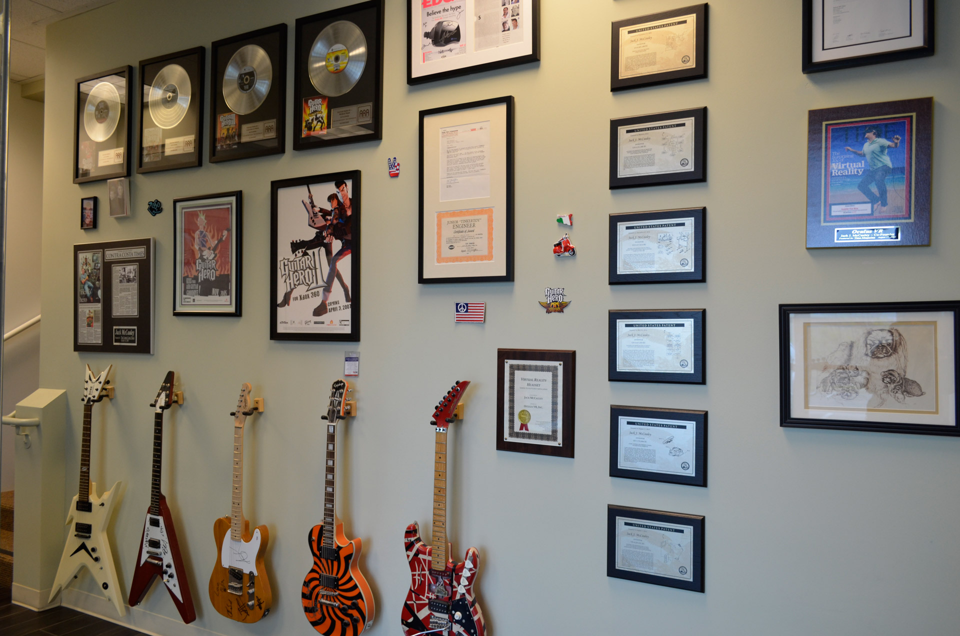 McCauley takes me through a small lobby space, which is adorned with Guitar Hero and Oculus related placards of recognition, into what he calls ‘McCauley Labs.’ “Lab,” I suppose, because what goes on inside is not just crafting, but much experimentation, and “McCauley Labs,” (in the form of a business title) perhaps because he employs several staff members who have complementary expertises, and explore projects he doesn’t quite have time for.