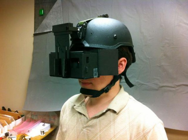‘Head mounted display’ might not even be an appropriate term for such a beast — Luckey said this one was so heavy that we was going to mount it on a spring balanced boom to make it easy to look through.