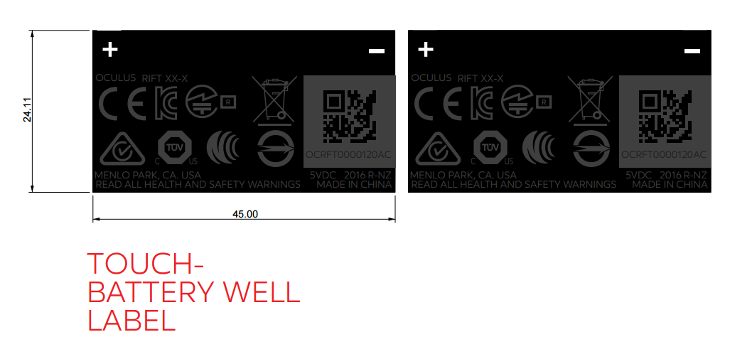 The only mention of the Oculus Touch (which will ship sometime after the Rift) comes from a document showing the required labeling that will be present on the devices. The Touch label is described as being inside the unit’s ‘battery well’ which suggests the device will have a removable battery, as FCC labels must be in a ‘user accessible area’. Oculus has not detailed previously how Touch will be powered.