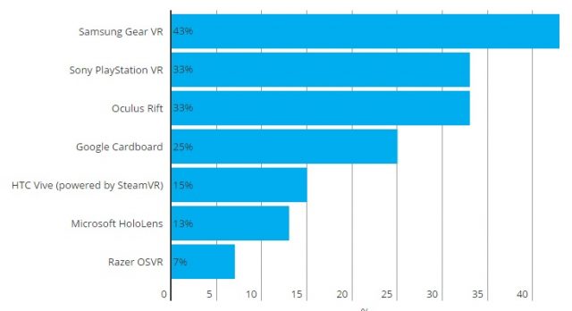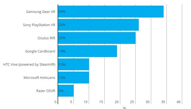 • “with the HTC Vive trailing surprisingly far behind at 5%”
