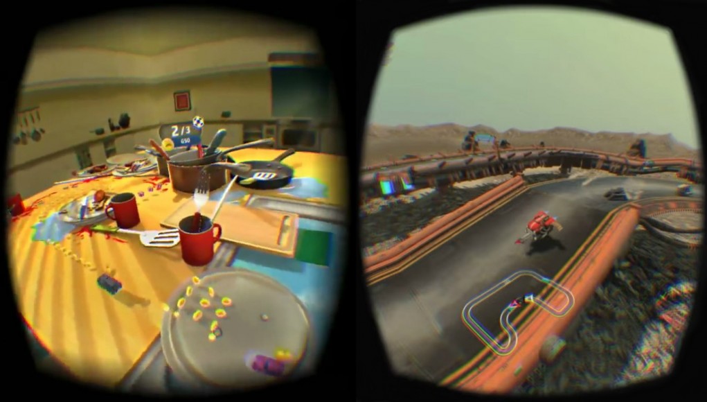 The game also integrates very well with the DK1/DK2, and seems to pan out slightly more in terms of the amount of action captured on the floating camera, although this may be due to the need to peer over high obstacles like jutting plates and toaster ovens, leaving the game a little more distant feeling than BlazeRush.