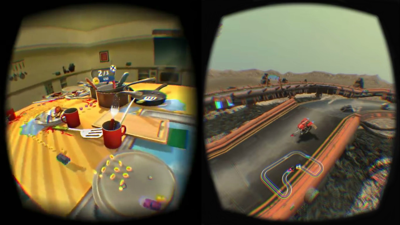 Two little games have been making a big splash with the VR community as of late, with their classic Micro Machines gameplay and solid Rift DK2 integration. Leading this pack of ‘tiny racers’, BlazeRush and Toybox Turbos showcase a masterful use of third-person point of view in a space once populated almost exclusively by first-person experiences, raising the question: are tiny racers here to stay?