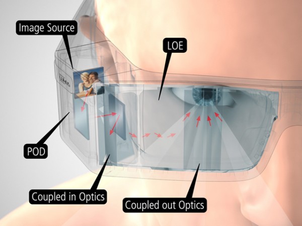 Though not yet in production, you can see from the photos that the company is making great progress on this technology. Vuzix is aiming for 1280×720 (720p) resolution and 30-50 degree field of view, however it could be more depending upon the model.
